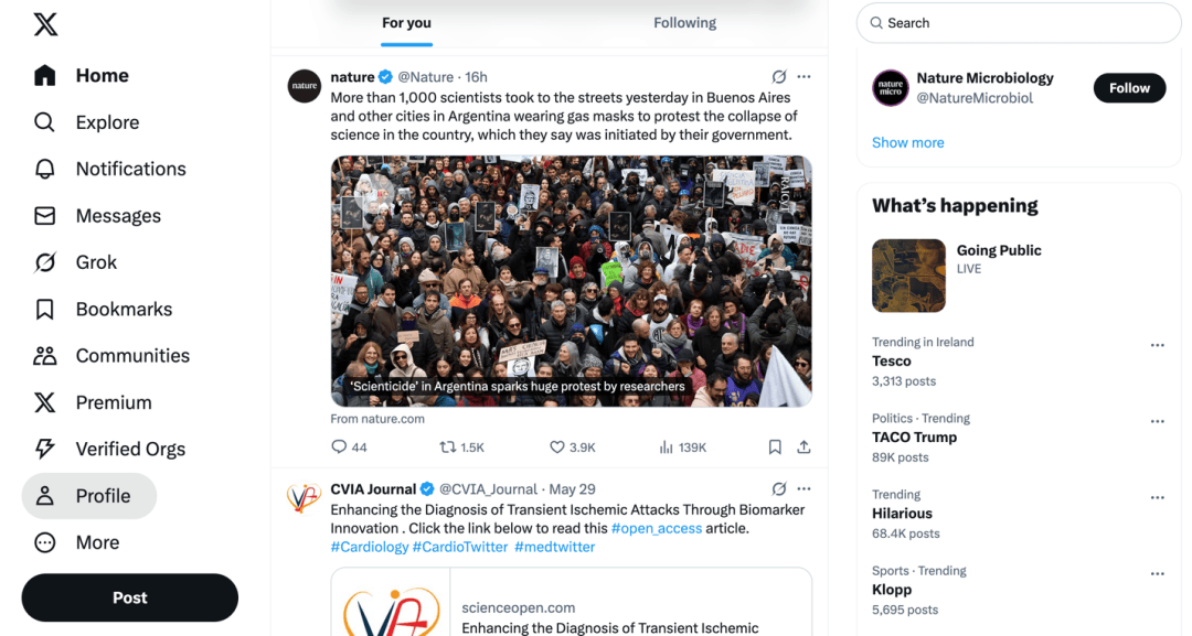 编者按:十年前,学术期刊的主要传播阵地还集中在期刊官网和数据库页面;今天,社交媒体正在成为学术出版的“第二战场”。尤其是在海外,越来越多期刊正在系统性运营 Twitter(X)、LinkedIn、Facebook 等社交平台,用以增强可见度、促进引用、拓展作者群体、提升国际声誉。其中,Twitter(现 X 平台)无疑是最受期刊青睐的社交平台之一。为什么它成为主流?它究竟适合什么类型的内容传播?又该如何发挥社交平台的优势?我们在服务十余本国际期刊社交媒体账号的经验中,总结出以下几点关键原因。一、因为科研用户就在 Twitter 上Twitter 拥有活跃的科研社群——这是一切传播的前提。平台上聚集了来自全球数十万名科研人员,包括实验室负责人、博士后、编辑、研究型高校的教师与学生、医疗从业者等。在这里,最新研究成果、学术会议见闻、投稿经验、科研资源分享、跨国项目合作等都在实时发生。据 Altmetric 数据显示,Twitter 是学术文章被社交媒体提及最多的平台之一,占比长期居于主导地位。Nature、Science、Cell 等三大顶刊均在十年前就建立了官方 Twitter 账号,目前粉丝量均超过 200 万。这不仅是品牌传播的窗口,也是构建与作者、读者持续联系的渠道。